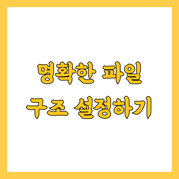 파일 관리의 첫걸음은 명확한 파일 구조를 설정하는 것입니다. 이 작업을 통해 원하는 자료를 빛의 속도로 찾을 수 있다는 사실 , 믿기 힘드시겠죠? 제대로 된 파일 구조는 마치 고속도로를 달리는 스포츠카처럼 효율적인 업무 프로세스를 마련해 줍니다 . 2022년 데이터 관리협회(DMA) 조사에 따르면, 기업의 75%가 정돈된 파일 구조를 통해 연간 최대 20%의 업무 시간 절약을 경험했다고 합니다. 이는 업무 효율 속도가 줄어든 시간을 바로바로 충전해 준다는 뜻이죠!