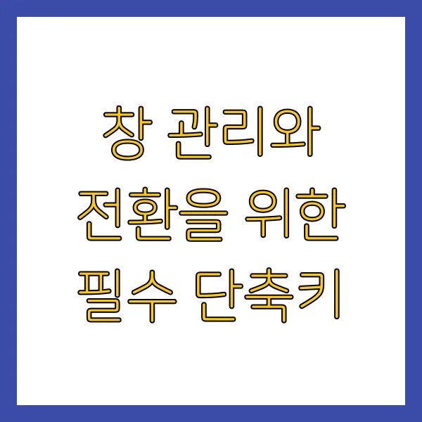 여러분이 마우스로 창을 클릭하고 드래그하면서 우왕좌왕하는 중이라면, 저도 모르게 모니터 너머로 여러분의 어깨를 두드리며 이 말을 전하고 싶습니다: "제발, 단축키라는 친구를 써보세요!" 이 친구들이 얼마나 놀라운지 모를 수 있겠지만, 사실 창을 관리하고 전환하는 데 있어서는 그야말로 마법 같은 존재 랍니다. 아래 내용들을 눈 크게 뜨고 스크롤 해 보세요~!