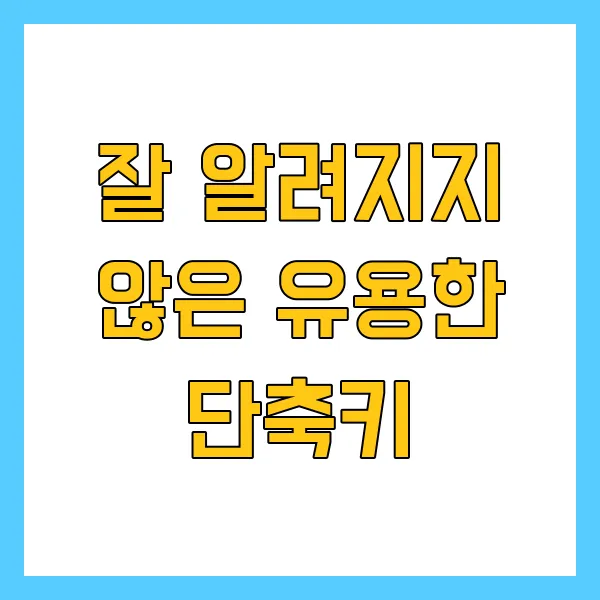 컴퓨터를 사용하다 보면 단축키로 작업 속도를 높이는 방법 이 얼마나 유용한지 알게 됩니다. 여러분도 한 번쯤은 ' 알트+탭 '과 ' 윈도우+화살표 ' 같은 단축키를 써본 경험이 있을 텐데요. 그런데, 이 단축키들이 단순한 창 전환 및 이동에 그치는 것만이 아니랍니다! 사실 알고 보면 정말 유용한 기능들이 숨겨져 있답니다. 잘 알려지지 않은, 하지만 꼭 알아야 할 단축키 TOP10 을 소개해드리겠습니다. 이 글을 읽고 나면 " 아, 이게 이렇게 쓰이는 거구나! " 하며 무릎을 탁 치실지도 몰라요. 컴퓨터 작업 속도를 업그레이드하는 방법 , 지금 시작합니다!